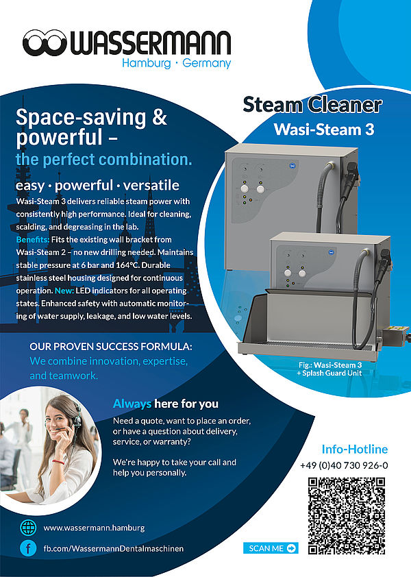 Wassermann is a medium-sized, owner-operated company with head office in Hamburg. We design and produce high-quality technical devices in Germany. Our main users are dental laboratories, dental clinics and various industrial areas worldwide.